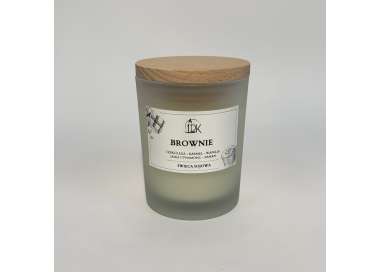 Świeca sojowa w transparentnym lub szronowanym szkle z drewnianą pokrywką o pojemności 205 ml, idealna do tworzenia przytulnej atmosfery w każdym wnętrzu.