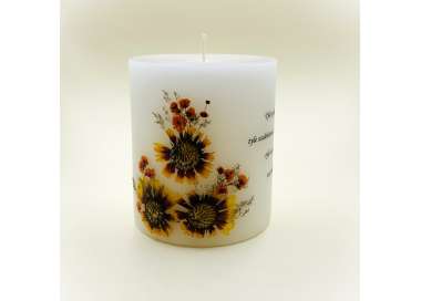 Nasza ręcznie robiona świeca ozdobna łączy w sobie inspirującą sentencję oraz piękno suszonych bratków i kwiatów polnych. To nie tylko źródło...